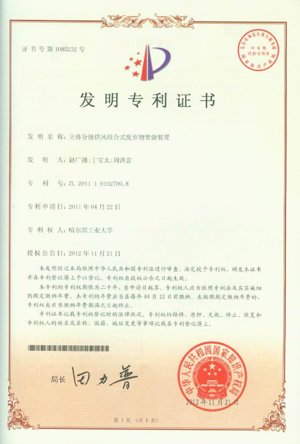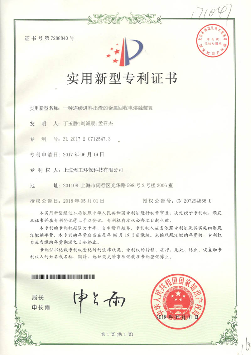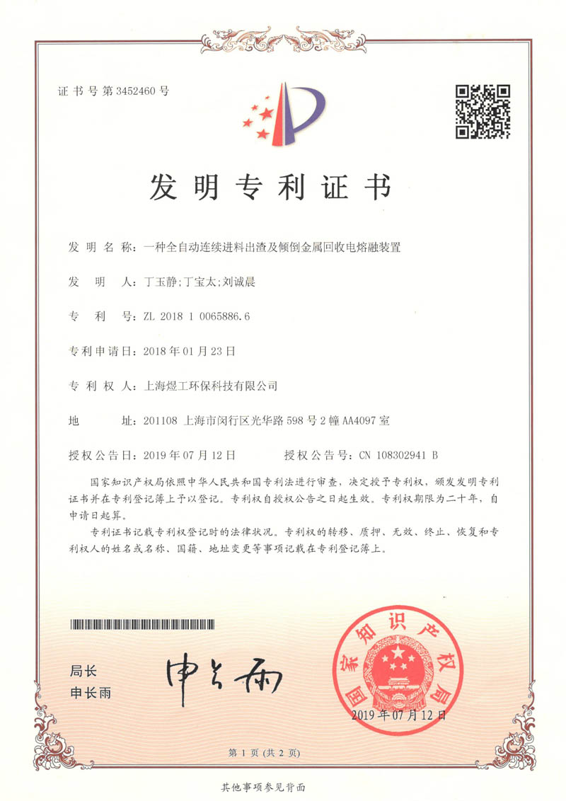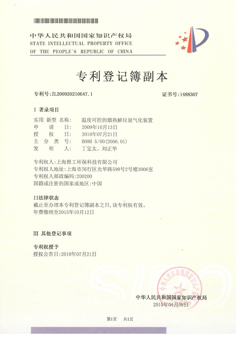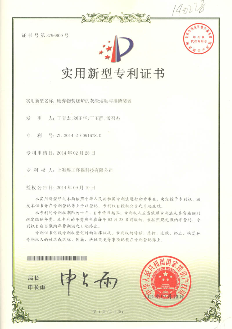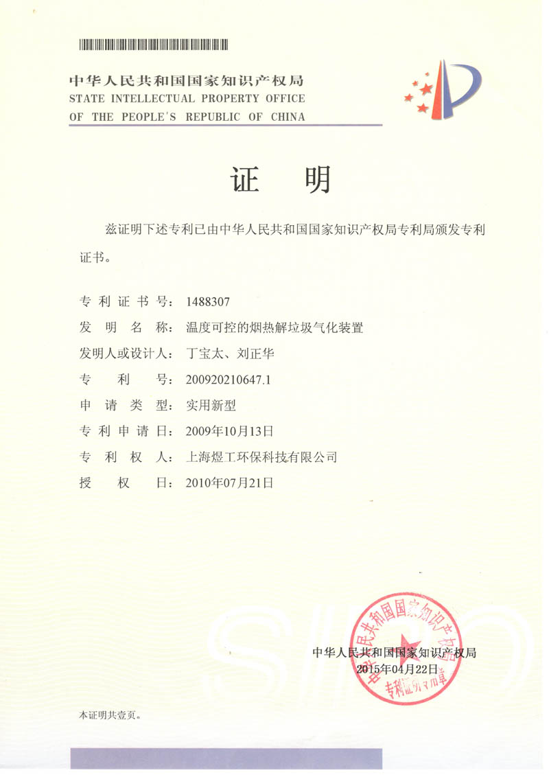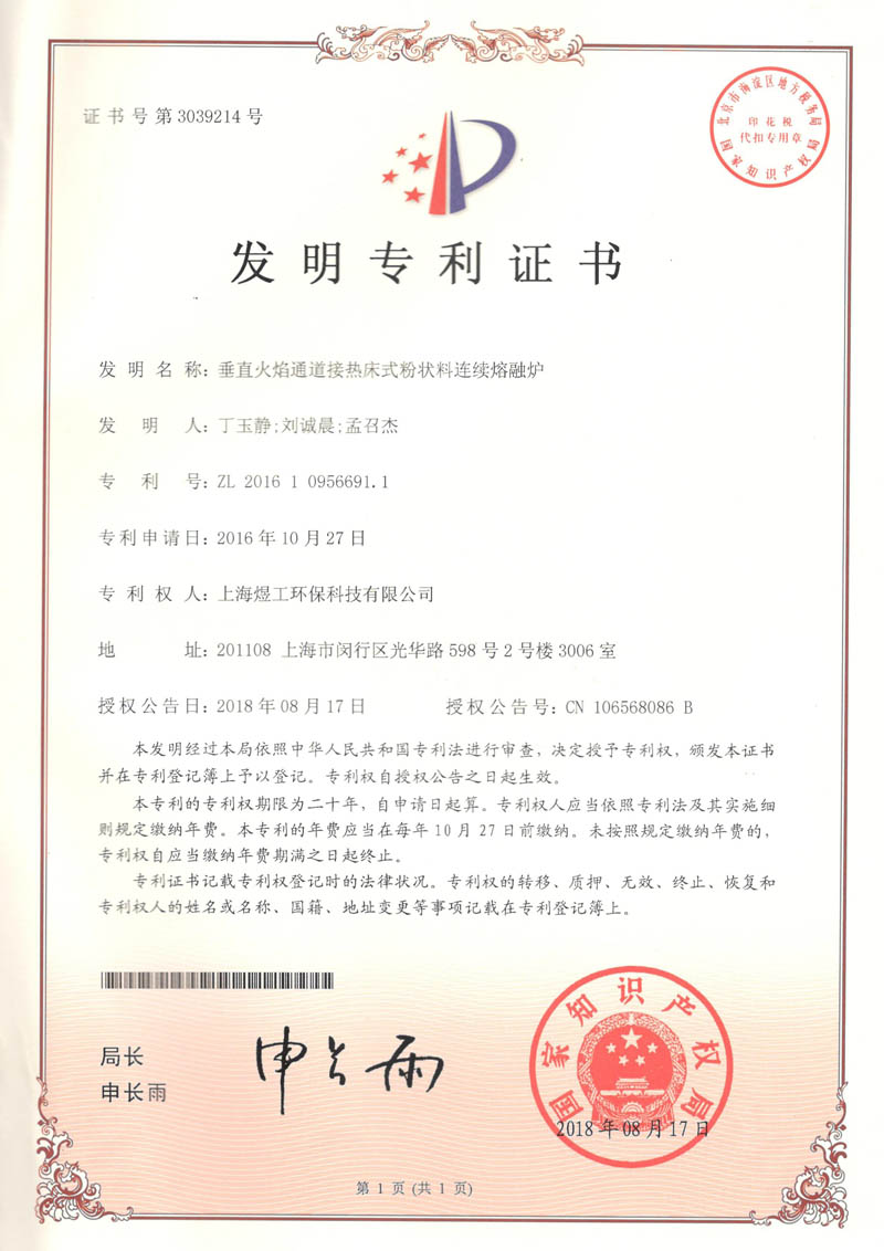 公司與哈爾濱工業(yè)大學(xué)、上海大學(xué)、上海同濟(jì)大學(xué)、上海第二工業(yè)大學(xué)、哈電站集團(tuán)、北方工程設(shè)計(jì)研究院(集團(tuán))有限公司等單位保持長(zhǎng)期緊密的合作關(guān)系,在固危廢焚燒、碳化、脫附、熔融等技術(shù)領(lǐng)域填補(bǔ)國(guó)內(nèi)多項(xiàng)空白,已擁有發(fā)明專利18項(xiàng),實(shí)用新型專利33項(xiàng),注冊(cè)商標(biāo)7項(xiàng)。公司先后獲得上海市高新技術(shù)企業(yè)、上海市專利試點(diǎn)、上海市專精特新、知識(shí)產(chǎn)權(quán)管理體系認(rèn)證等證書。