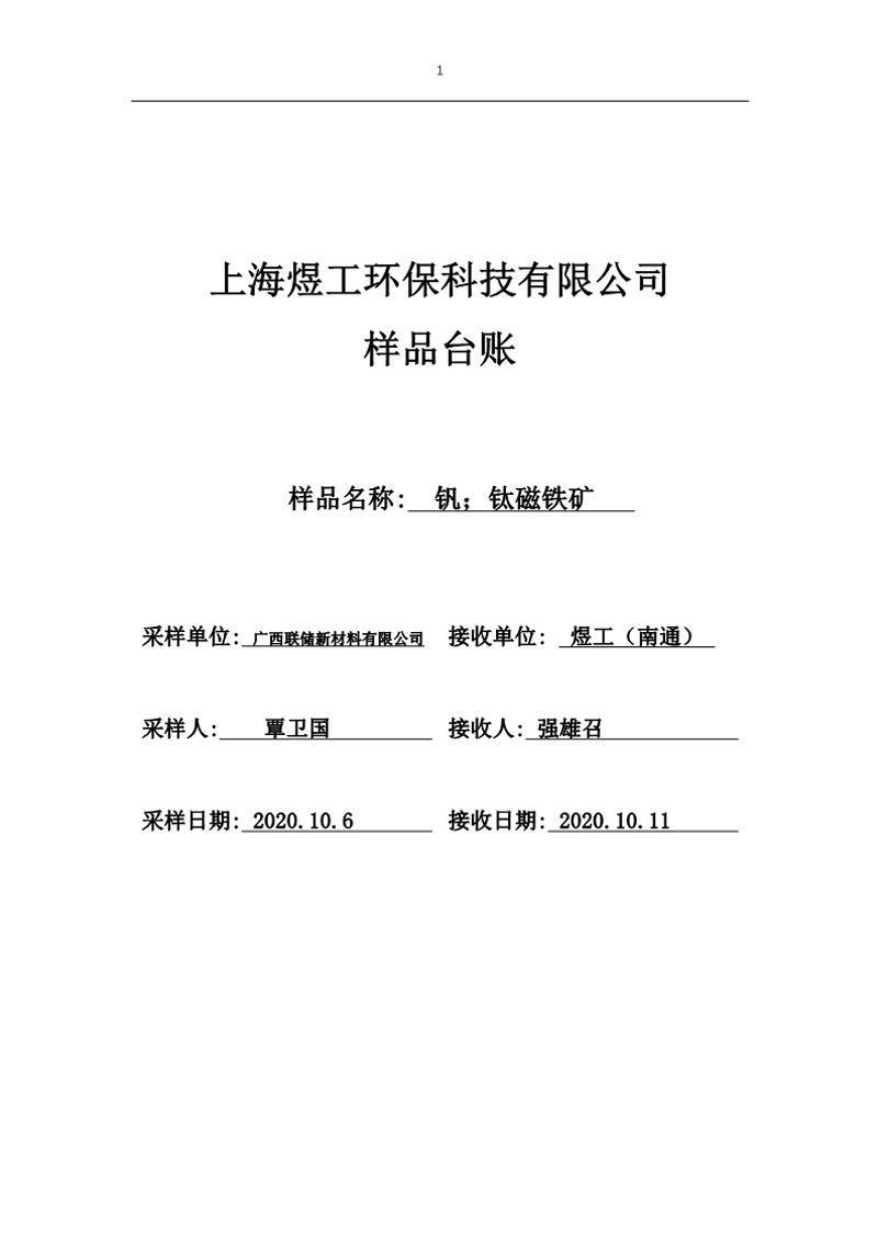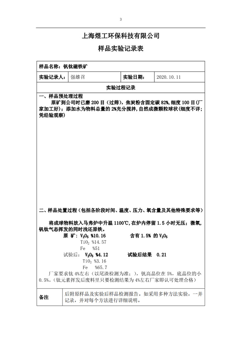 煜工環(huán)保釩鈦磁鐵礦樣品試驗報告