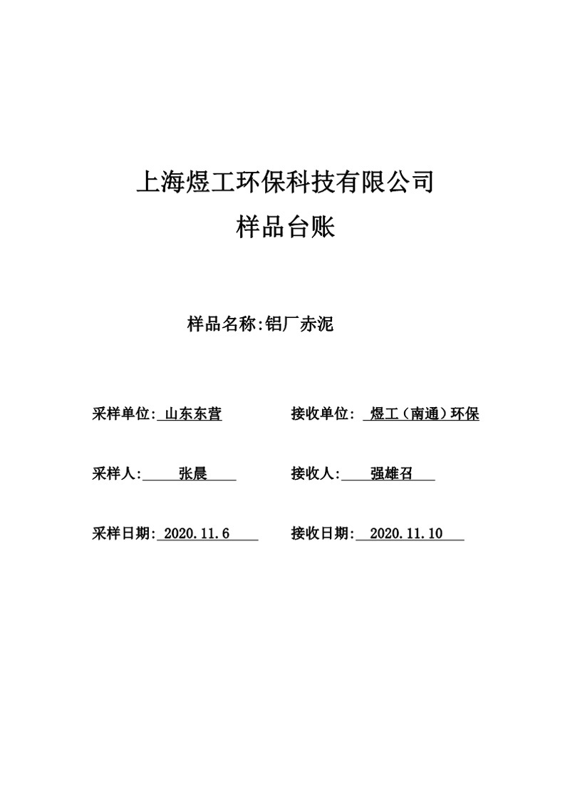 煜工環(huán)保鋁廠赤泥樣品試驗(yàn)報(bào)告